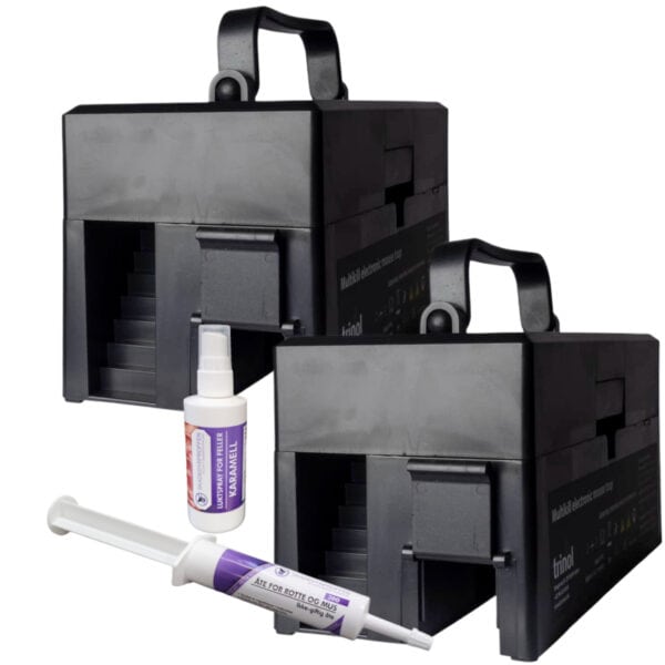 PARTISALG: 2 stk TRINOL Multikill elektrisk musefelle – for inntil 10 mus om gangen – MED profesjonelt åte OG karamellspray
